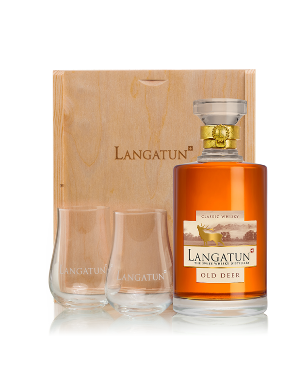 Langatun - Old Deer - Single Malt Whisky - in Wooden Box with two Glasses - 46% - 50cl